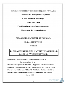 LA PHRASE VERBALE DANS L’APPRENTISSAGE DU F.L.E. CAS DE LA 1ERE ANNEE MOYENNE |