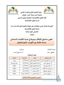 تطوير صناديق الاوقاف ودورها في تنمية الاقتصاد الاجتماعي دراسة مقارنة بين الكويت، ماليزيا والجزائر |