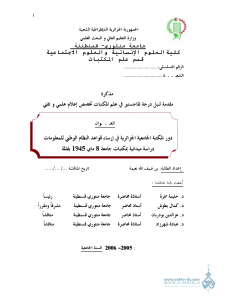 المذكرة بعنوان “دور المكتبة الجامعية الجزائرية في إرساء قواعد النظام الوطني للمعلومات”