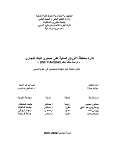 المذكرة بعنوان “إدارة محفظة الأوراق المالية على مستوى البنك التجاري”