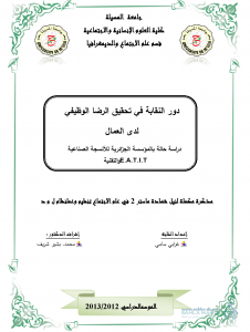 دور النقابة في تحقيق الرضا الوظيفي لدى العمالدراسة حالة بالمؤسسة الجزائرية لأنسجة الصناعية EATIT والتقنية |