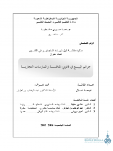 المذكرة بعنوان “جرائم البيع في قانوني المنافسة والممارسة التجارية”