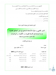 المذكرة بعنوان “النشر العلمي وسلوك الأساتذة الباحثين في نشر أعمالهم العلمية – دراسة ميدانية في أقسام الفيزياء والكمياء والرياضيات بكلية العلوم”