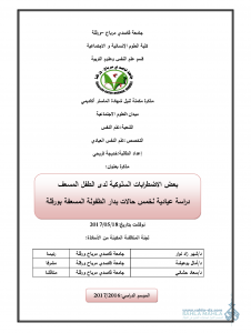 المذكرة بعنوان “بعض الاضطرابات السلوكية لدى الطفل المسعف دراسة عيادية لخمس حالات بدار الطفولة المسعفة بورقلة”