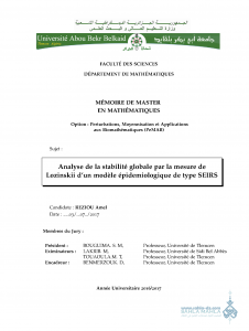 Analyse de la stabilité globale par la mesure de Lozinskii d’un modèle épidemiologique de type SEIRS |