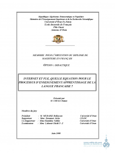 INTERNET ET FLE, QUELLE EQUATION POUR LE PROCESSUS D’ENSEIGNEMENT/APPRENTISSAGE DE LA LANGUE FRANCAISE ?
