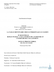 LA FAILLE IDENTITAIRE CHEZ LE PERSONNAGE LE CLEZIEN D’ADAM POLLO ROMAN PUZZLE : L’ECLATEMENT DE L’ECRITURE ET L’ECRITURE DE L’ECLATEMENT |