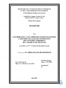 CONTRIBUTION A UNE APPROCHE INTERLINGUISTIQUE A TRAVERS UNE ANALYSE CONTRASTIVE DES SYSTEMES TEMPORELS DE L’ARABE ET DU FRANÇAIS |