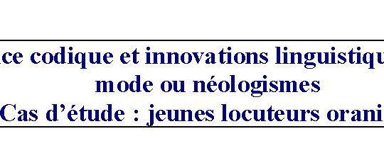Alternance codique et innovations linguistiques : effet de mode ou néologismes Cas d’étude : jeunes locuteurs oraniens