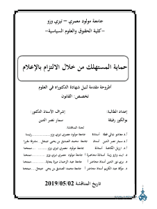 مقدمة الباب الأول: تكريس الالتزام بإعلام المستهلك آلية لتحقيق التوازن في العلم بينه بين المهني الفصل الأول: الإطار النظري للالتزام بإعلام المستهلك المبحث الأول: استقلالية الالتزام بإعلام المستهلك المطلب الأول: مفهوم الالتزام بإعلام المستهلك الفرع الأول: التعريف بالالتزام بإعلام المستهلك أولا: تعريف الالتزام بالإعلام ثانيا: خصائص الالتزام بالإعلام ثالثا: تمييز الالتزام بالإعلام عن الالتزام بالنصيحة والالتزام بالتحذير الفرع الثاني: الطبيعة القانونية للالتزام بإعلام المستهلك أولا: الالتزام بالإعلام التزام يبذل عناية ثانيا: الالتزام بالإعلام التزام مختلط ثالثا: الالتزام بإعلام المستهلك التزام بتحقيق نتيجة المطلب الثاني: أسس قيام الالتزام بالإعلام الفرع الأول: أسس الالتزام بالإعلام في القواعد العامة أولا: استناد الالتزام بالإعلام إلى مبدأ حسن النية ثانيا: أساس الالتزام بالإعلام بالاستناد إلى عدم كفاية نظرية صحة وسلامة الرضا الفرع الثاني: أساس الالتزام بالإعلام استنادا إلى القواعد الخاصة أولا: إعادة المساواة في العلم بين المتعاقدين أساس للالتزام بالإعلام ثانيا: التأصيل القانوني للالتزام بالإعلام تحقيقا للمساواة في العلم بين المتعاقدين المبحث الثاني: أطراف الالتزام بالإعلام: المهني والمستهلك مفهومان مختلفان المطلب الأول: المهني طرف مدين بالالتزام بالإعلام الفرع الأول: مفهوم المهني باعتباره طرفا متفوقا في العقد الفرع الثاني: تحديد أصناف المهنيين المطلب الثاني: المستهلك طرف دائن بالالتزام بالإعلام الفرع الأول: الاتجاه الموسع لمفهوم المستهلك الفرع الثاني: الاتجاه المضيق لمفهوم المستهلك خلاصة الفصل الفصل الثاني: مضمون الالتزام بإعلام المستهلك المبحث الأول: محل الالتزام بالإعلام : تعدد المعلومات التي يلتزم المهني بالإدلاء بها المطلب الأول: المعلومات المتعمّقة بالمنتوجات الفرع الأول: تعريف المنتوجات الفرع الثاني: طبيعة وأنواع المعلومات محل الالتزام بإعلام المستهلك أولا: طبيعة المعلومات محل الالتزام بالإعلام ثانيا: أنواع المعلومات المتعمقة بالمنتوجات المطلب الثاني: افتراض القانون لعلم المهني بالمعلومات وجهل المستهلك بها الفرع الأول: افتراض القانون لعلم المهني بالمعلومات أولا: مدى علم المهني بالمعلومات ثانيا: التزام المهني بالاستعلام من أجل الإعلام الفرع الثاني: افتراض القانون لجهل المستهلك بالمعلومات أولا: جهل المستهلك المشروع بالمعلومات ثانيا: وصف المستهلك يغنيه عن القيام بالاستعلام المبحث الثاني: وسائل تنفيذ الالتزام بإعلام المستهلك المطلب الأول: الوسم أهم وسيمة لتنفيذ الالتزام بالإعلام الفرع الأول: التعريف بالوسم أولا: تعريف الوسم ثانيا: أوصاف الوسم الفرع الثاني: مشتملات الوسم أولا: مشتملات الوسم في السمع الموجية للاستيلاك ثانيا: مشتملات الوسم في الخدمات المطلب الثاني: وسائل أخرى لتنفيذ الالتزام بإعلام المستهلك الفرع الأول: تنفيذ الالتزام بالإعلام عن طريق المعلقات الفرع الثاني: تنفيذ الالتزام بالإعلام عن طريق الإشهار أولا: مضمون الإشهار باعتباره وسيمة لإعلام المستهلك ثانيا: حظر الإشهار التضليلي باعتباره وسيلة لتغليط المستهلك الفرع الثالث: تنفيذ الالتزام بإعلام المستهلك عن طريق الاتصال الشفيي أولا: تقديم المعلومات شفاهة ثانيا: الإشكالات التي يثيرها تقديم المعلومات شفاهة الفرع الرابع: تنفيذ الالتزام بإعلام المستهلك عن طريق وسائل الإعلام والاتصال خلاصة الفصل الباب الثاني: ترتيب الجزاء أثر للإخلال بالالتزام بإعلام المستهلك الفصل الأول: الجزاء المدني المترتب على الإخلال بالالتزام بالإعلام المبحث الأول: حق المستهلك في طلب إبطال العقد وحقو في الضمان المطلب الأول: حق المستهلك في طلب إبطال العقد الفرع الأول: طلب إبطال العقد تأسيسا على نظريتي الغلط والتدليس أولا: طلب إبطال العقد تأسيسا على نظرية الغلط ثانيا: طلب إبطال العقد تأس