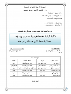 المكتبة الرقمية بالجامعة الجزائرية – نصميمها وإنشاءها – مكتبة جامعة الامير عبد القادر نموذجا –