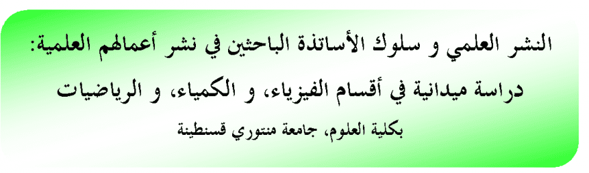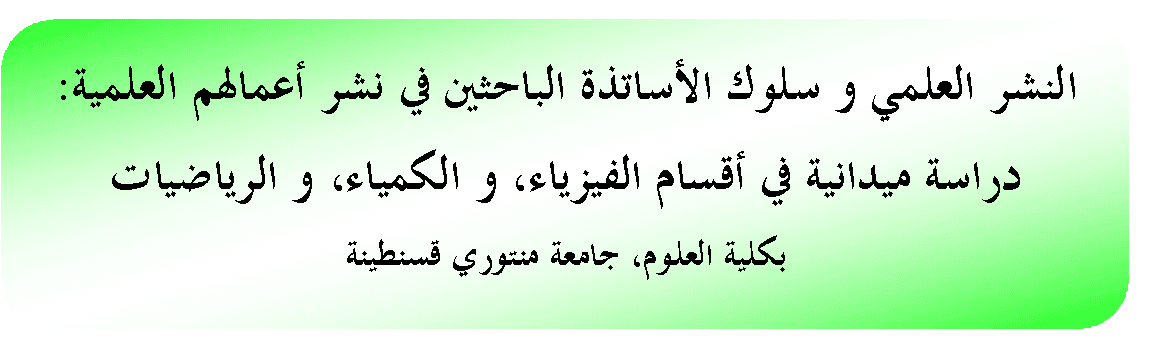 النشر العلمي وسلوك الأساتذة الباحثين في نشر أعمالهم العلمية – دراسة ميدانية في أقسام الفيزياء والكمياء والرياضيات بكلية العلوم
