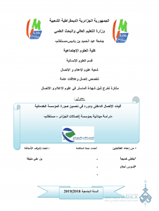 آليات الاتصال الداخلي ودوره في تحسين صورة المؤسسة الخدماتية – دراسة ميدانية بمؤسسة اتصالات الجزائر – مستغانم |