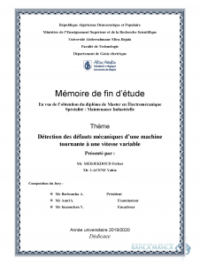 Détection des défauts mécaniques d’une machine tournante à une vitesse variable |
