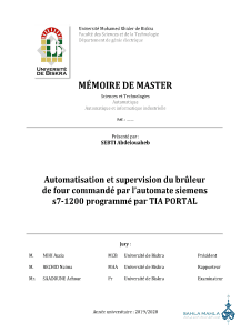 Automatisation et supervision du brûleur de four commandé par l’automate siemens s7-1200 programmé par TIA PORTAL