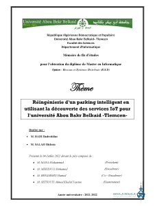 Réingénierie d’un parking intelligent en utilisant la découverte des services IoT pour l’université Abou Bakr Belkaid -Tlemcen |