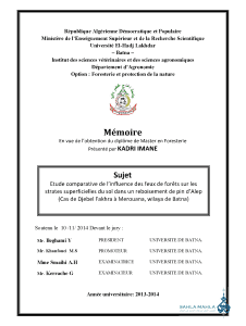 Etude comparative de l’influence des feux de forêts sur les strates superficielles du sol dans un reboisement de pin d’Alep