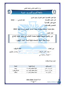دور وأهمية البرمجة الخطية متعددة الأهداف في ترشيد عملية الإنتاج دراسة حالة: شركة الإسمنت لولاية تبسة –الماء الأبيض |