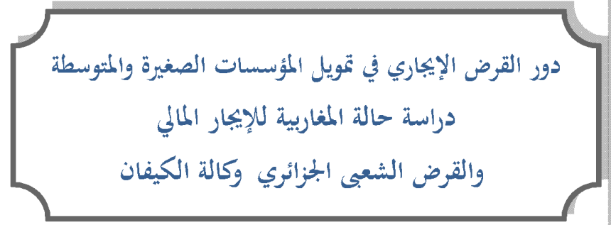 دور القرض الإيجاري في تمويل المؤسسات الصغيرة والمتوسطة دراسة حالة المغاربية للإيجار المالي والقرض الشعبي الجزائري وكالة الكيفان