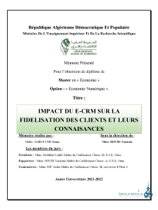 IMPACT DU E-CRM SUR LA FIDELISATION DES CLIENTS ET LEURS CONNAISANCES |