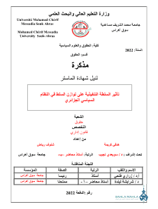 تأثير السلطة التنفيذية على توازن السلط في النظام السياسي الجزائري |