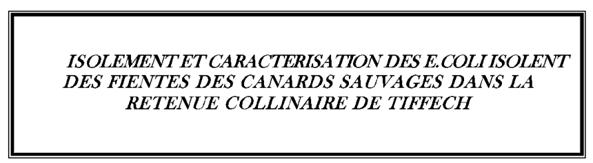 ISOLEMENT ET CARACTERISATION DES E.COLI ISOLENT DES FIENTES DES CANARDS SAUVAGES DANS LA RETENUE COLLINAIRE DE TIFFECH |