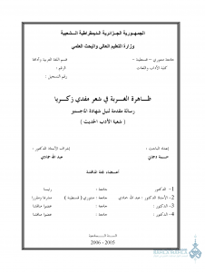 المذكرة بعنوان “ظاهرة الغربة في شعر مفدي زكرياء “