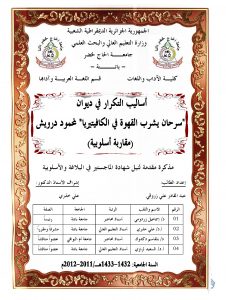 المذكرة بعنوان “أساليب التكرار في ديوان سرحان يشرب القهوة في الكافيتيريا لمحمود درويش مقاربة اسلوبية”