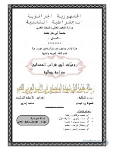 نضع بين أيديكم مذكرة تخرج تخصص “الأدب العربي القديم”
