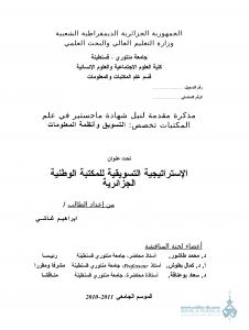 المذكرة بعنوان “الاستراتيجية التسويقية للمكتبة الوطنية الجزائرية “
