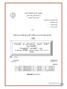 المذكرة بعنوان “أنظمة الرصد المعلوماتي في المؤسسات الاقتصادية – دور اختصاصي المعلومات “
