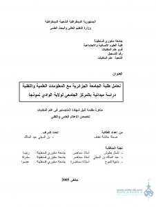 المذكرة بعنوان “تعامل طلبة الجامعة الجزائرية مع المعلومات العلمية والتقنية “