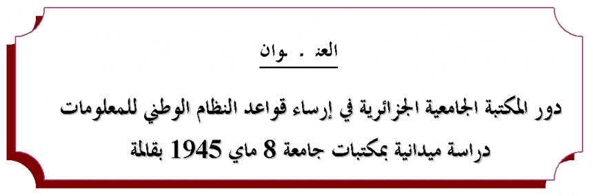 دور المكتبة الجامعية الجزائرية في إرساء قواعد النظام الوطني للمعلومات |