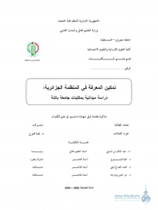 المذكرة بعنوان “تمكين المعرفة في المنظمة الجزائرية “