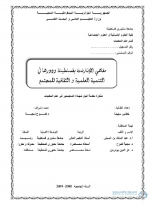 المذكرة بعنوان ” مقاهي الانترنت بقسنطينة ودورها في التنمية العلمية والثقافية للمجتمع “