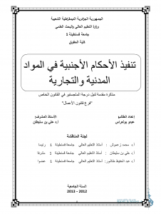 المذكرة بعنوان “تنفيذ الاحكام الأجنبية في المواد المدنية والتجارية”
