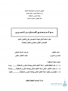 نضع بين أيديكم مذكرة تخرج تخصص “القانون الجنائي والعلوم الجنائية “