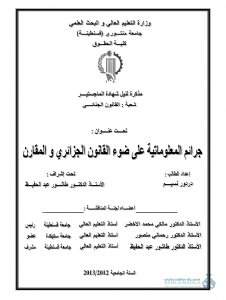 المذكرة بعنوان “جرائم المعلوماتية في ضوء القانون الجزائري والمقارن “