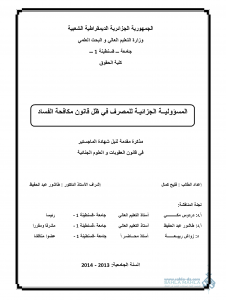 المذكرة بعنوان “المسؤولية الجزائية للمصرف في ظل قانون مكافحة الفساد “