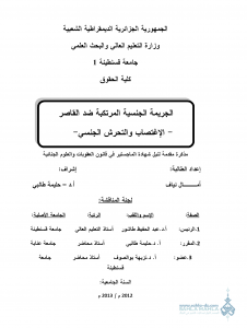 المذكرة بعنوان “الجريمة الجنسية المرتكبة ضد القاصر – الاغتصاب والتحرش الجنسي -“