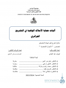| عنوان المذكرة: | آليات حماية الأملاك الوقفية في التشريع الجزائري |