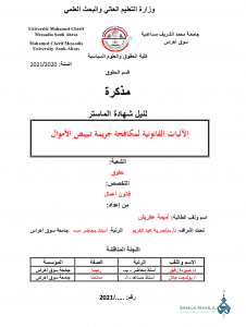 الآليات القانونية لمكافحة جريمة تبييض الاموال |