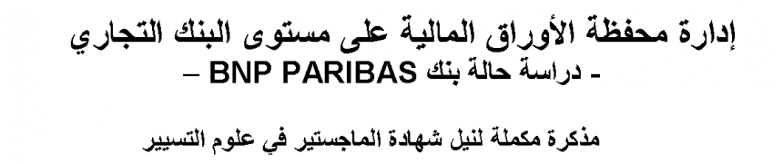 المذكرة بعنوان “إدارة محفظة الأوراق المالية على مستوى البنك التجاري”