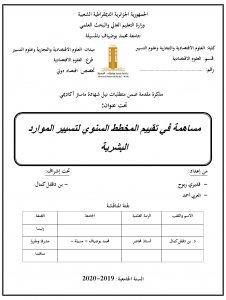 المذكرة بعنوان “مساهمة في تقييم المخطط السنوي لتسيير الموارد البشرية”