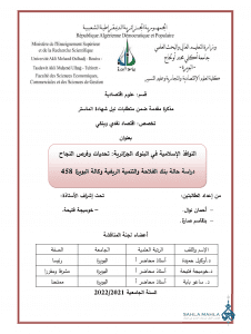 النوافذ الإسلامية في البنوك الجزائرية: تحديات وفرص النجاح دراسة حالة بنك الفلاحة والتنمية الريفية وكالة البويرة 458 |