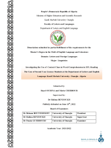 The Case of Second Year Licence Students at the Department of Letters and English Language-Kasdi Merbah University- Ouargla- Algeria |