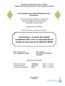 | عنوان المذكرة: | Trayectoria y vivencias del exiliado republicano Max Aub: la contemplación de Argelia en unas poesías de Diario de Djelfa |