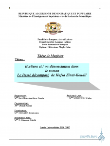 Ecriture et / ou dénonciation dans le roman Le Passé décomposé de Hafsa Zinaï-Koudil |