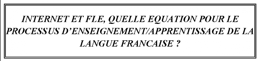 INTERNET ET FLE, QUELLE EQUATION POUR LE PROCESSUS D’ENSEIGNEMENT/APPRENTISSAGE DE LA LANGUE FRANCAISE ? |