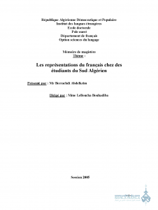 | عنوان المذكرة: | Les représentations du français chez des étudiants du Sud Algérien |
